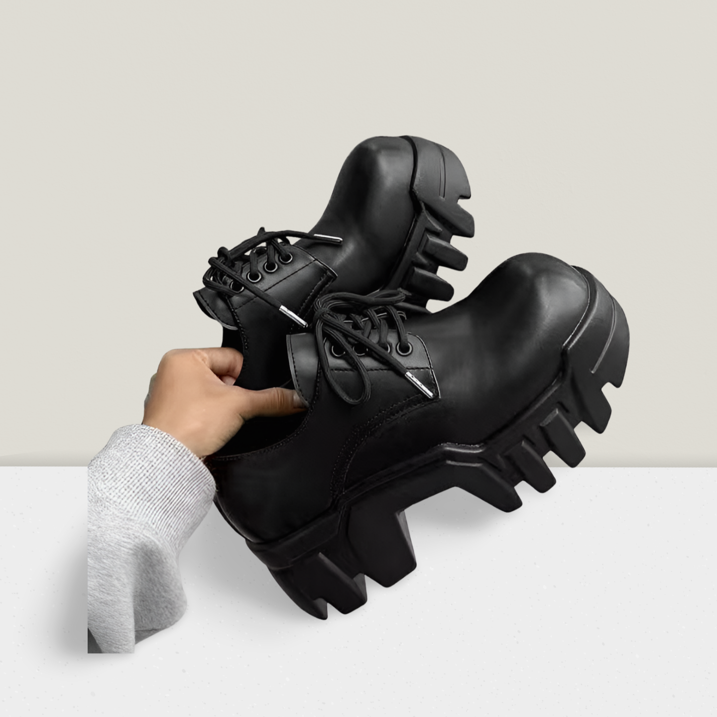 This heavy-sole Oxford shoe in Jet Black blends classic lace-up structure with a bold outsole for modern professional and casual styling.